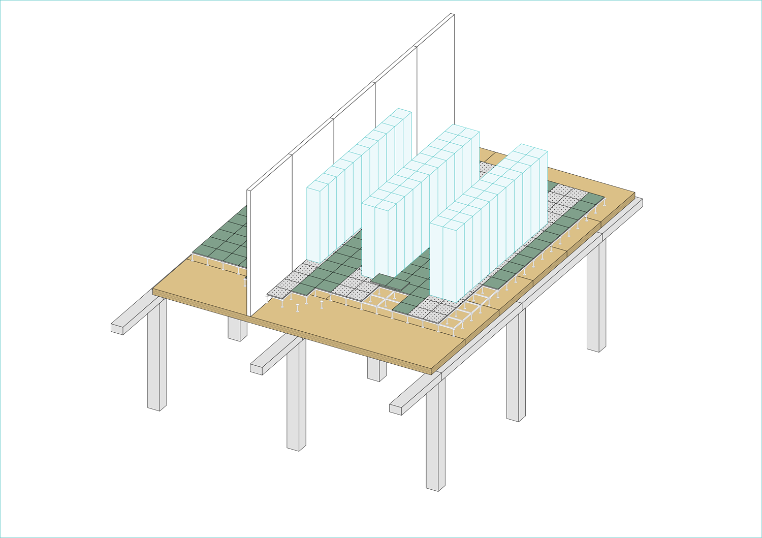 ThecaDC01 CLT floor panels can be combined with a raised floor system. The "DC01" reflects a new approach to how services are routed. By moving services from the ceiling to under a load-bearing raised floor, ThecaDC01 offers unparalleled flexibility in data center design.