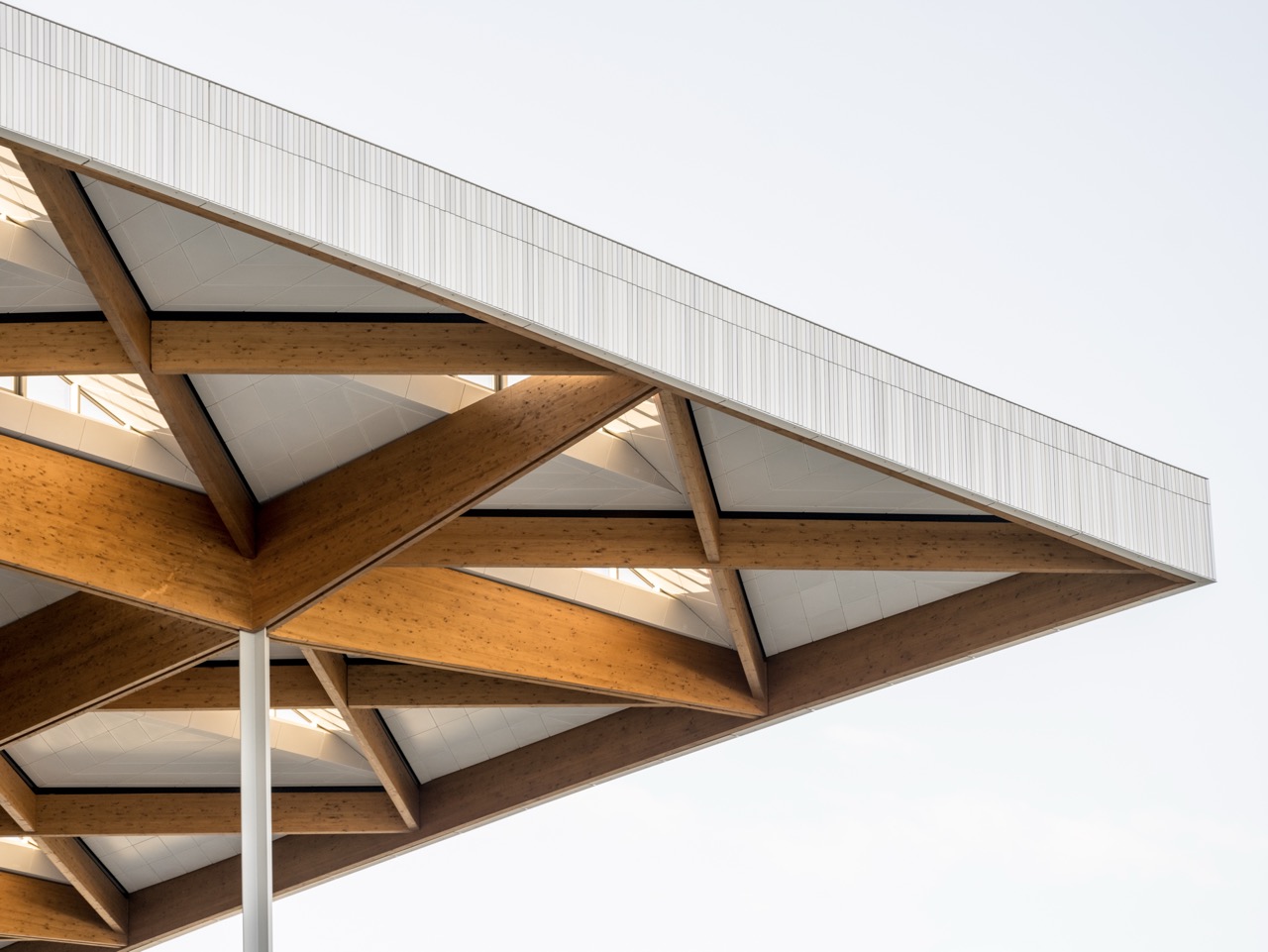 The roof consists of 594 timber beams, some as long as 32 metres and weighing up to 7 tonnes. Each beam is factory-coated with a no-VOC multi-layer coating system, ensuring minimal maintenance, even in a marine environment.